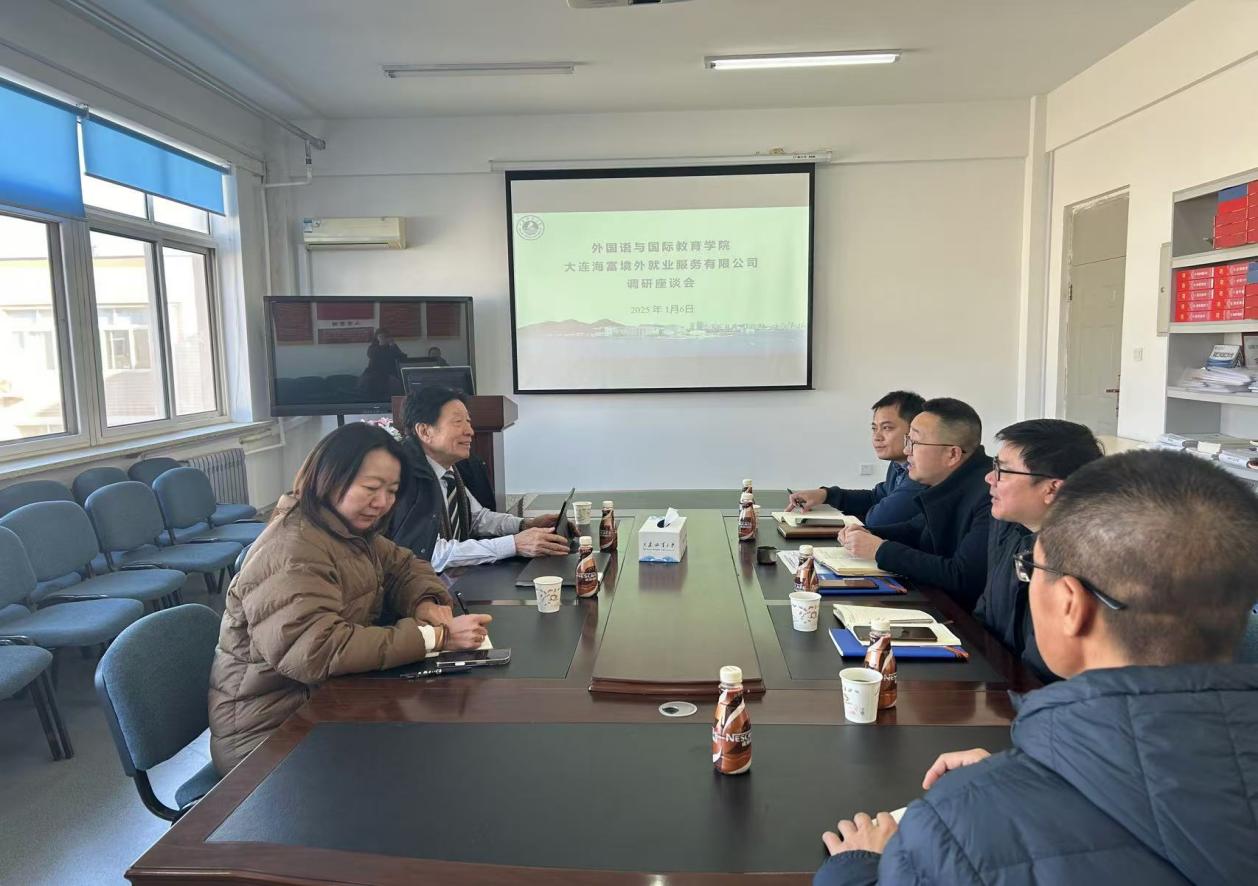 1月6日下午,大连海富境外就业服务有限公司董事长衣秉阳和总经理王雪丽一行到盛帆娱乐官网 开展调研座谈会。SBOBET 副院长崔永光、副书记付常兵、纪委书记黄桂峰、日语系主任王国华、副主任颜景义参加座谈会。
