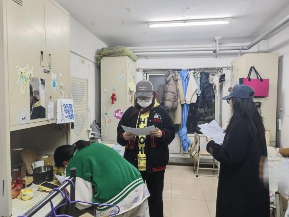 检查过程中,检查组逐间走访研究生宿舍,首先检查消防安全情况,重点查看宿舍内是否存放或使用大功率电器、是否存在私拉乱接电线等情况。检查人员讲解了违规用电可能引发的严重后果,提醒同学们切不可抱有侥幸心理,同时,也为同学们普及了日常消防安全知识,包括正确使用电器、如何应对火灾突发状况等,增强了同学们的消防安全意识和自我保护能力。接着检查寝室卫生情况,重点查看了地面清洁、床铺整理、物品摆放等情况,对卫生状况良好、整洁有序的寝室提出表扬,鼓励同学们继续保持;对于存在卫生问题的寝室,现场提出整改建议,并督促及时清理打扫,营造干净、健康的居住环境。