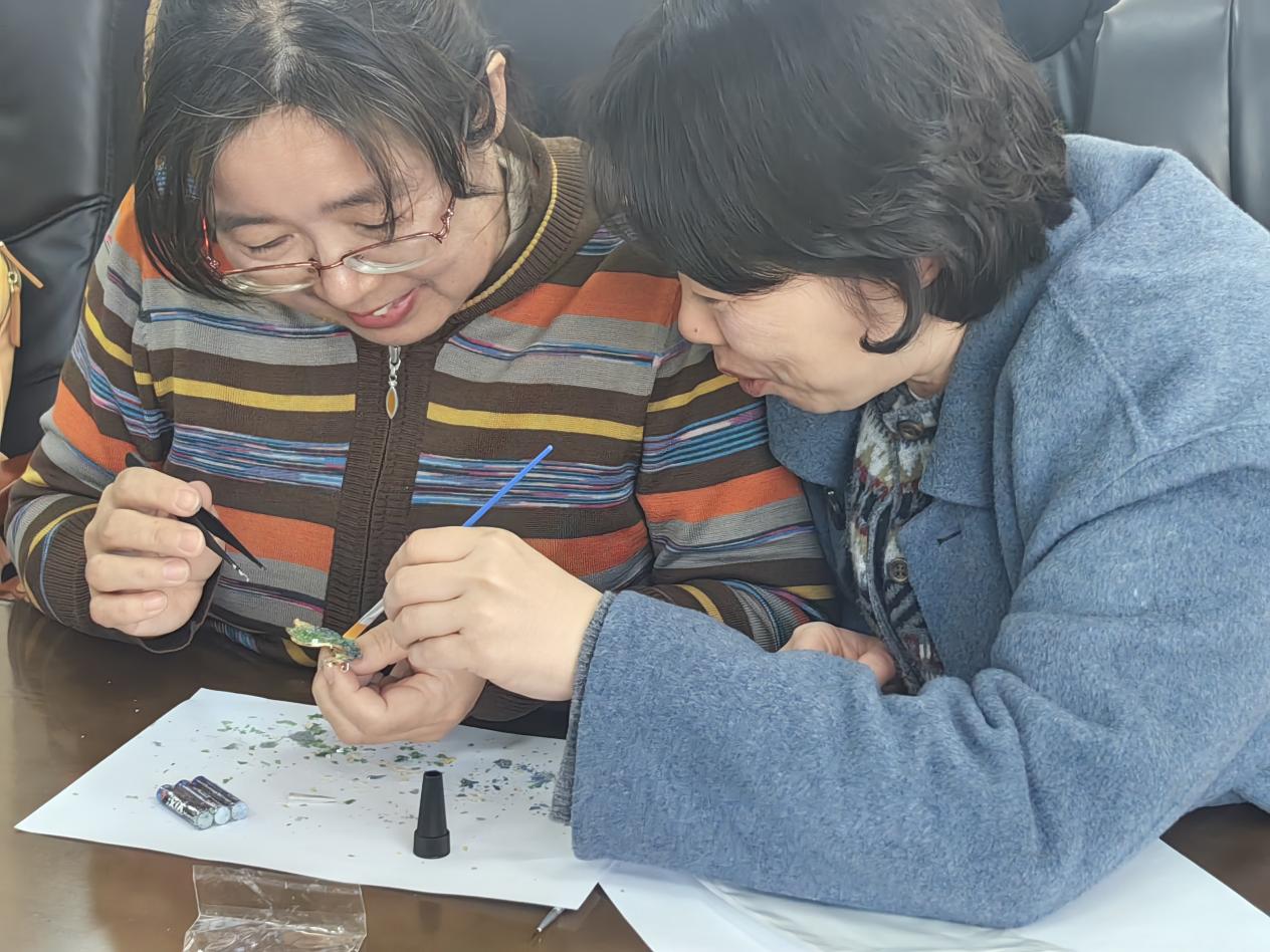 3月12日下午,SBOBET 工会举办了“非遗传承美,巾帼绽芳华”手工制作活动。首先向大家介绍螺钿艺术的历史根源、制作方法和文化意义,借助众多文物实例,带领老师们深入探索这门传统工艺的非凡魅力。随后,大家开始了胸针的制作,每个人都认真地挑选了喜欢的胸针底托和螺钿片,经过细致地调整和精心的亮化封层,一件件精致的螺钿胸针便呈现在了大家眼前。