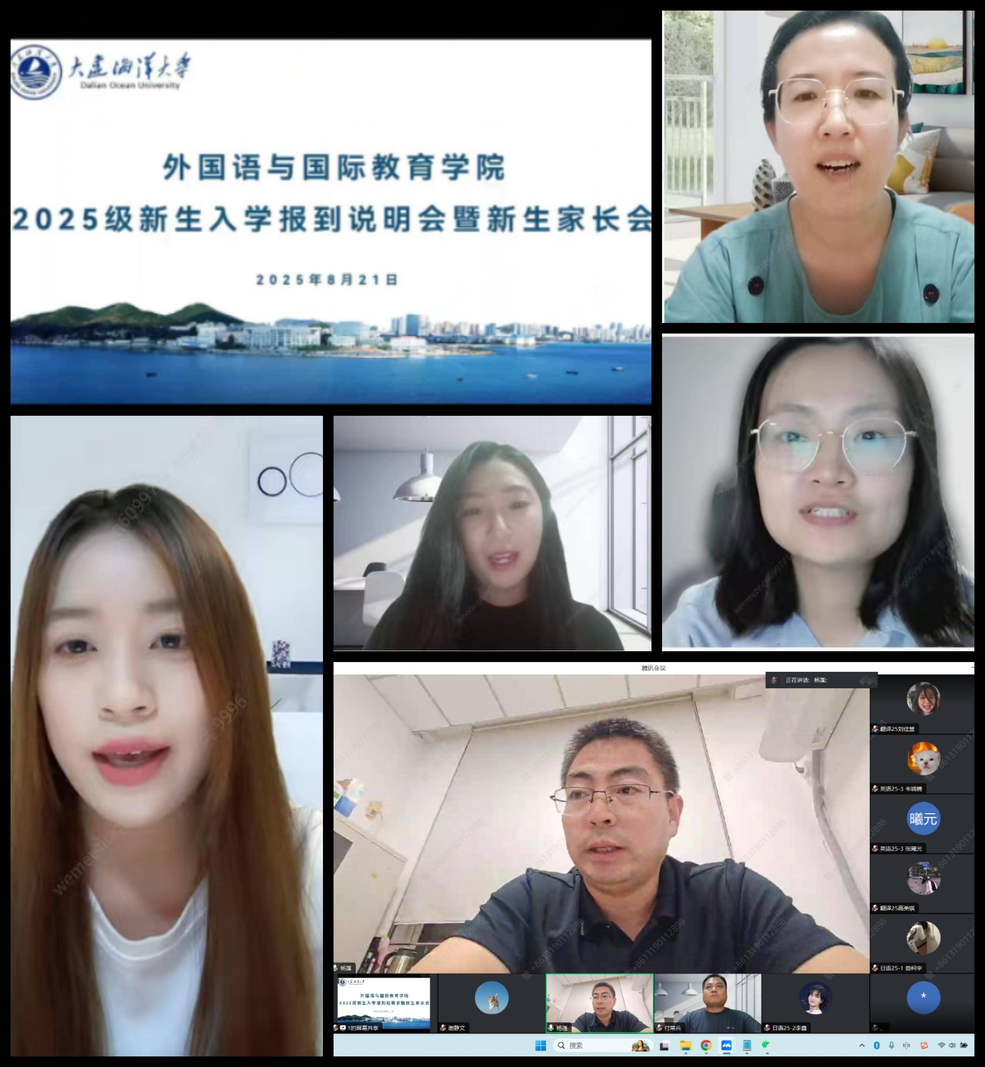 为积极回应2025级新生及家长对入学事宜的广泛关注,8月21日,盛帆娱乐 通过线上方式组织召开了新生报到说明会暨新生家长会,将迎新工作与育人关怀前移,助力新生从容迈入大学新阶段。校学生工作处副处长杨蓬、心理健康教育中心副主任王莉,SBOBET 党委副书记付常兵、团委书记周宇颂、2025级新生辅导员谢静文、班导师代表、学生助理以及全体新生与家长云端相聚,围绕学业规划、生活适应与成长支持等关键议题展开深入交流,共同为新生的大学之路保驾护航。