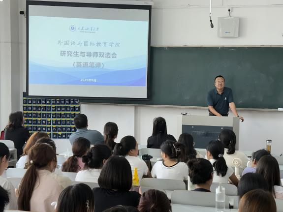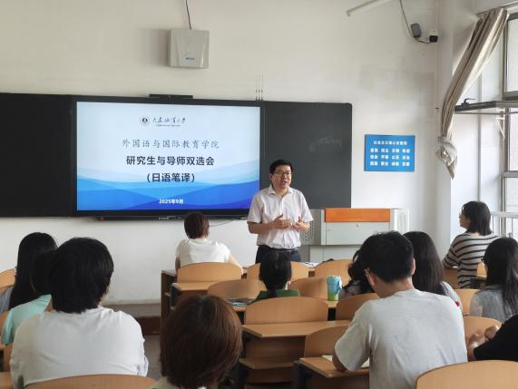 双选会伊始,崔永光强调了师生双选在研究生培养中的重要意义。他指出,建立双向互选机制不仅有助于学生明确学术方向,也能促进导师因材施教,是实现“精准育人、学术共生”的关键环节。黄桂峰在日语笔译专场中表示,希望同学们把握机会、积极交流,选择真正适合自己的学术引路人。在导师介绍环节,英语笔译和日语笔译方向的导师们依次就教育背景、研究方向、学术成果、项目进展及培养要求等方面作了详细陈述。