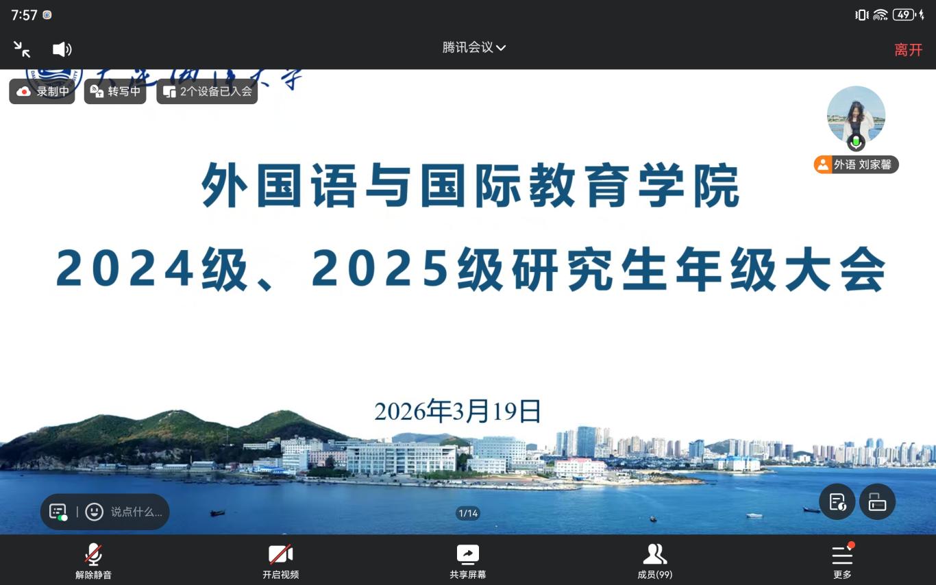 2024级、2025级研究生年级大会上,张苏对交换留学政策及硕士学位论文管理办法进行了详细解读,为学生学业发展提供明确指引。刘家馨重点开展安全教育,围绕清明、劳动节假期安全、宿舍用电安全、人身财产安全及网络安全等方面提出具体要求,同时就学生心理健康、综合素质测评、入党程序等相关事项进行说明,引导学生强化安全意识,增强班级凝聚力。