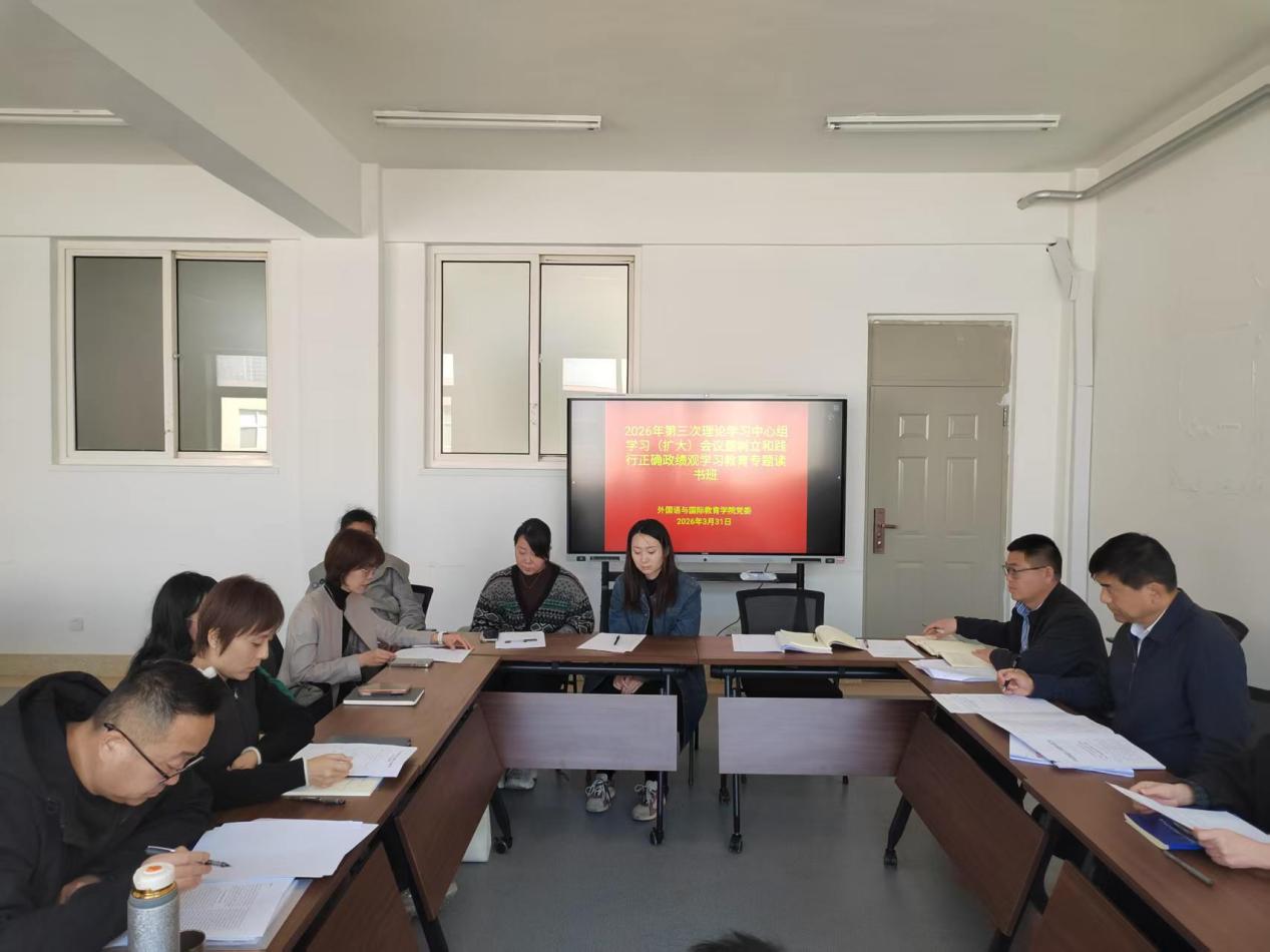 3月31日,盛帆娱乐官网 党委在会议室召开2026年第三次理论学习中心组学习(扩大)会议暨树立和践行正确政绩观学习教育专题读书班。SBOBET 党委理论学习中心组全体成员、各系主任及副主任、各支部委员、科级以上党员干部参加学习。会议由SBOBET 党委书记王海鹏主持。