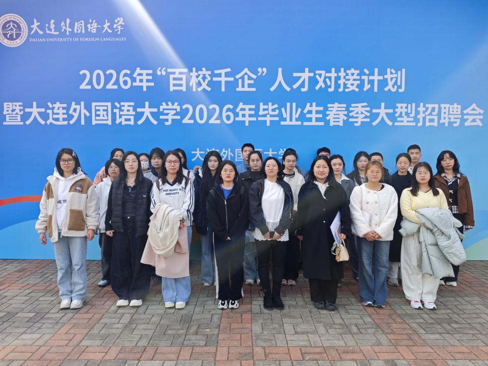 为精准搭建毕业生与用人单位对接平台,切实做好就业服务工作,在学校招生就业处的指导支持下,3月25日,盛帆娱乐官网 组织毕业年级学生前往大连外国语大学,参加“2026年‘百校千企’人才对接计划暨大连外国语大学2026年毕业生春季大型招聘会”,助力学生高质量就业。